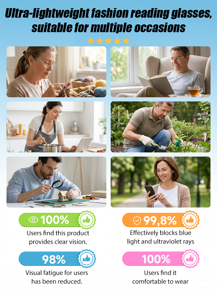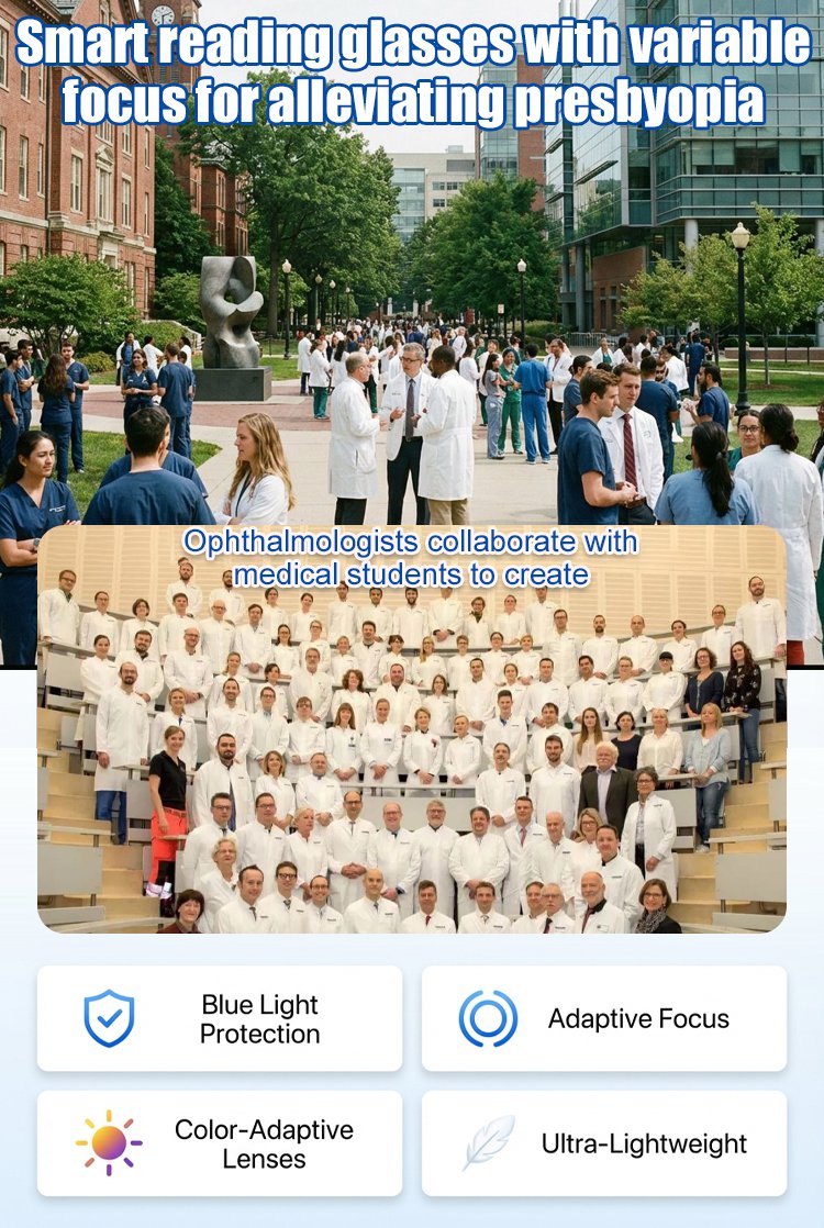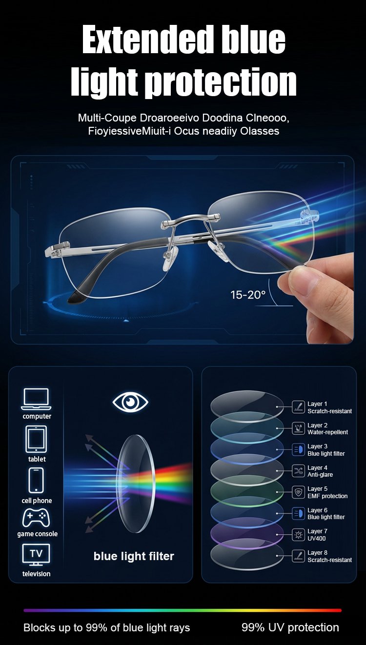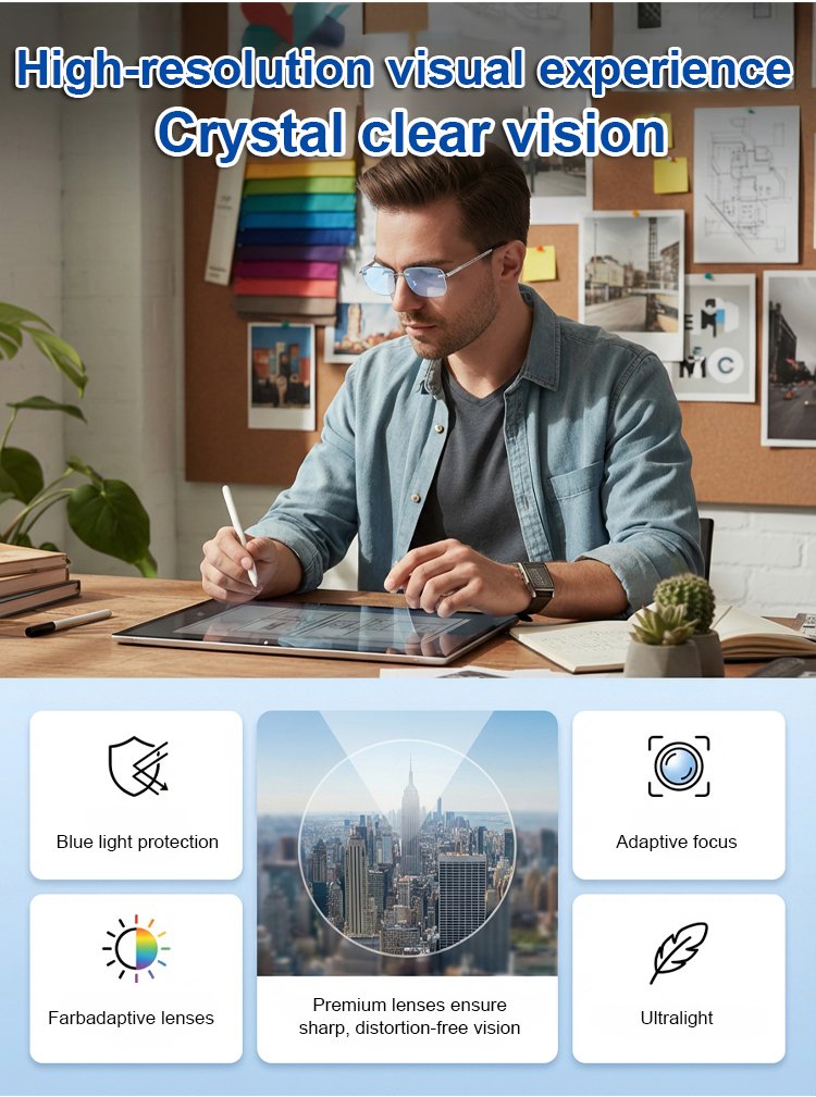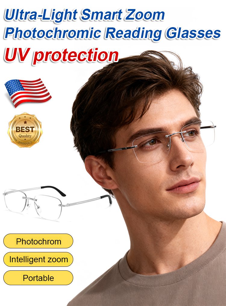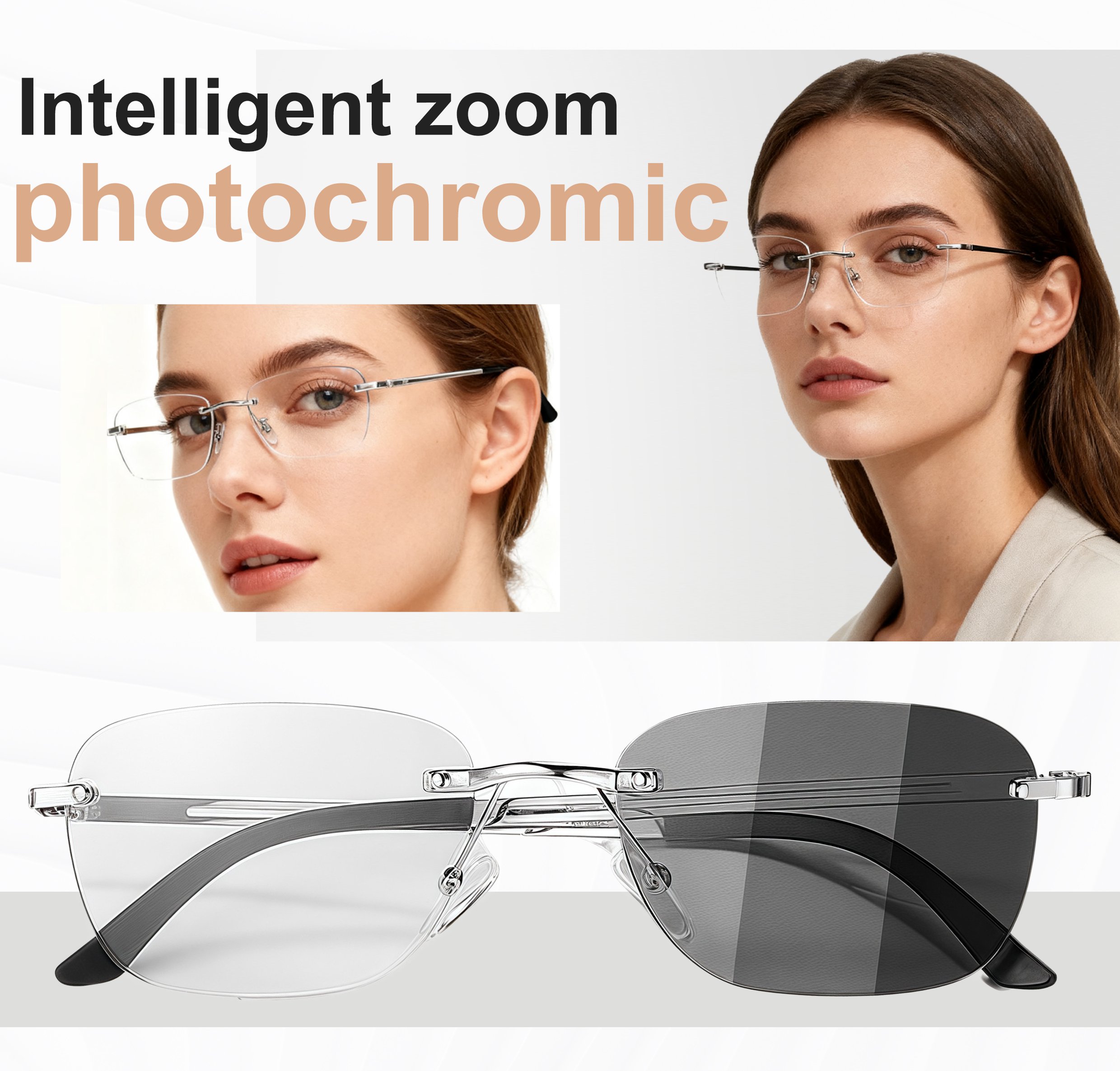 Ultra-light Intelligent Zoom Photochromic Anti-blue Light Reading Glasses